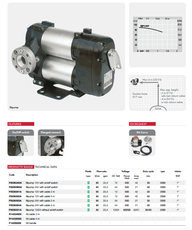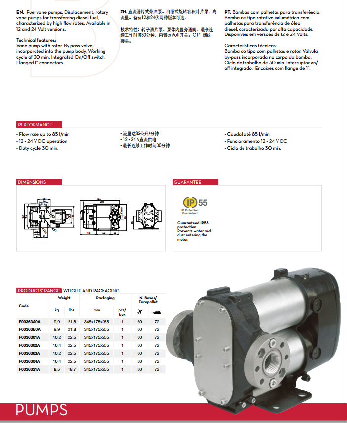 直流滑片式柴油泵, 自吸式旋轉(zhuǎn)容積葉片泵, 高流量。 備有12V和24V兩種版本可選。